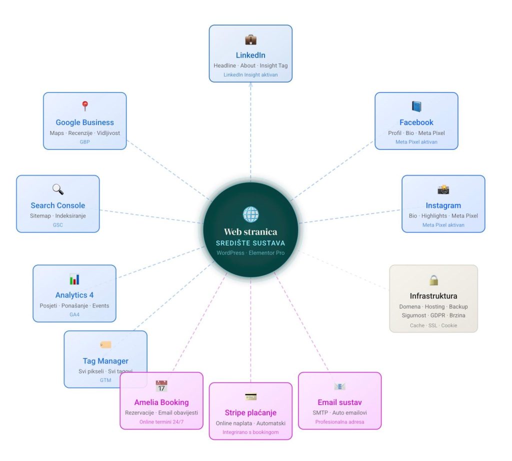 “Već sam ulagao u digitalni marketing i nije pomoglo.” Vjerojatno nije bio sustav. Bio je fragment — web bez analitike, profil bez piksela, objave bez strategije. Svaki dio radio je sam za sebe. Mi gradimo cjelinu u kojoj svaki element ima smisao samo zato što je spojen s ostalima.
